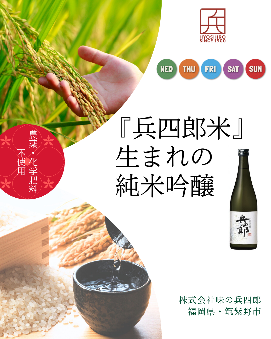 福岡県オリジナル品種「夢一献」を贅沢に使った「純米吟醸 兵四郎」をお届けします。
