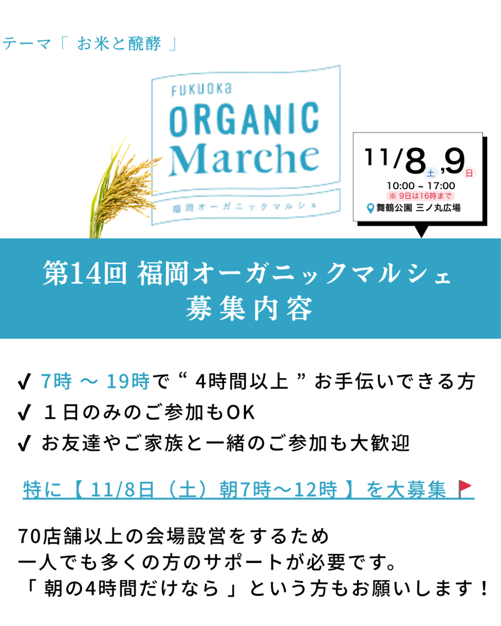 🎪第14回 福岡オーガニックマルシェ:10/15(水)21時〜
