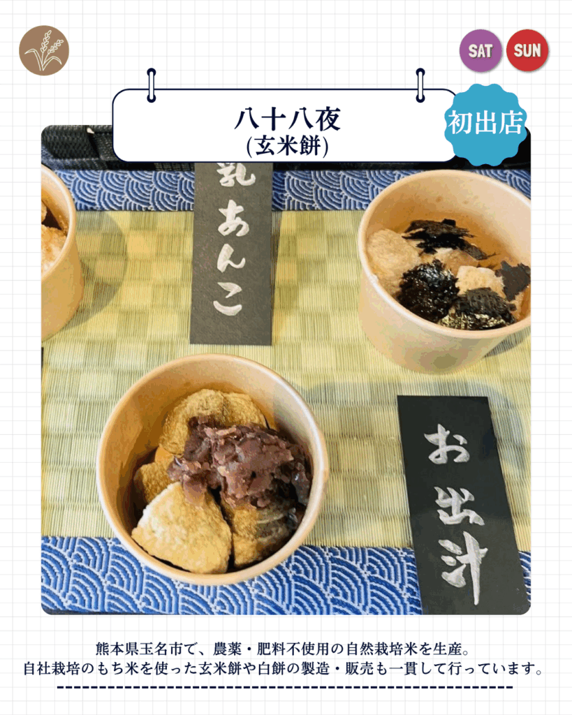 ⚫︎玄米は炊き方が難しかったり、玄米独特の味のため日常に食べていただくには少し抵抗がある方が多いのですが、餅ならばパンのように焼くだけ、揚げるだけ又はレンジでチンするだけで手軽に食べられます。今回のイベントでは、その玄米餅を揚げて、自家製のお出汁などかけて御提供し、他にお米とお餅の販売をいたします。