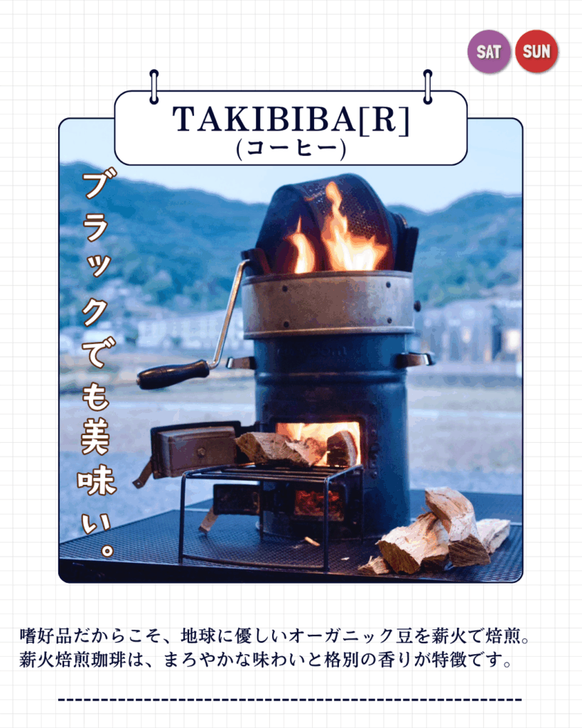 ⚫︎薪で焙煎したオーガニック珈琲は、香り抜群で優しい味わい。唯一無二の焚火珈琲で、貴方の心にも火を点します。