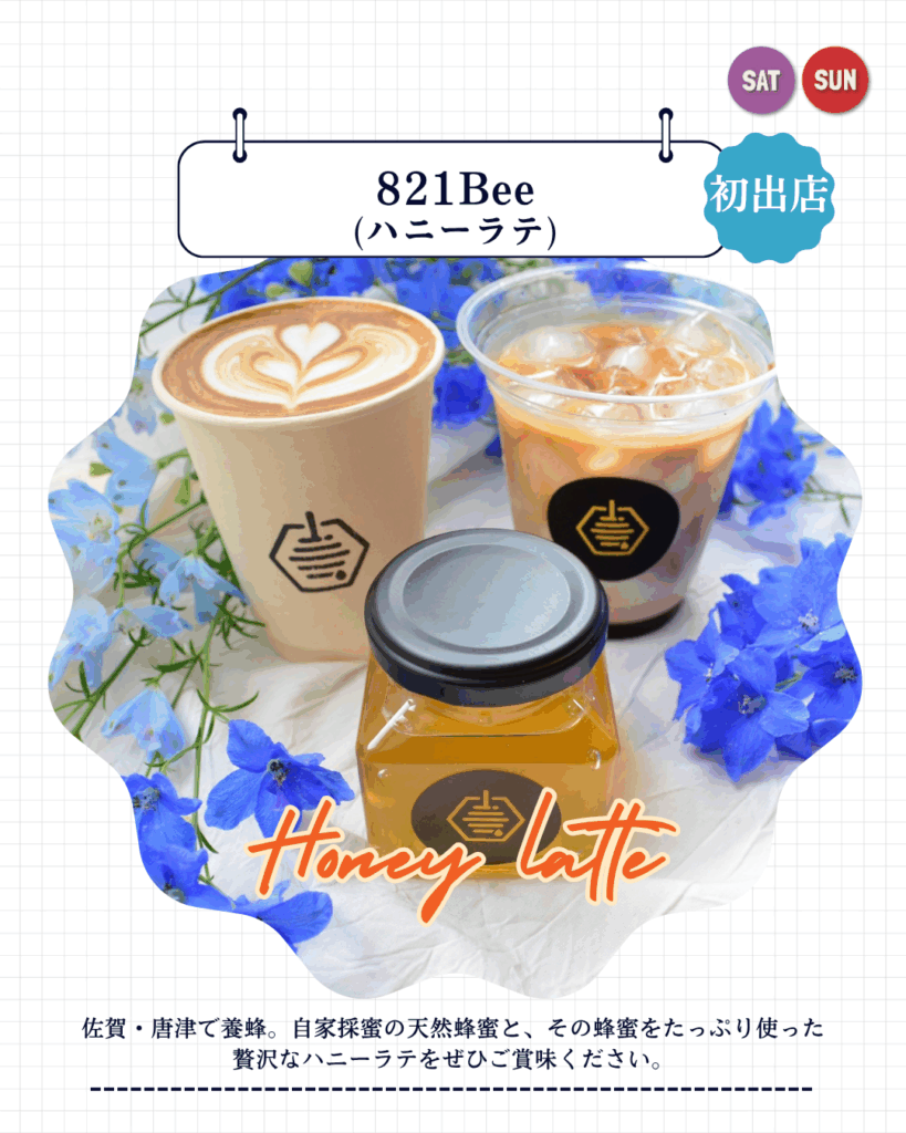 当日は自家採蜜の天然蜂蜜と、その蜂蜜をたっぷり入れたハニーラテなどをお出しします。贅沢なハニーラテを是非ご賞味ください🍯