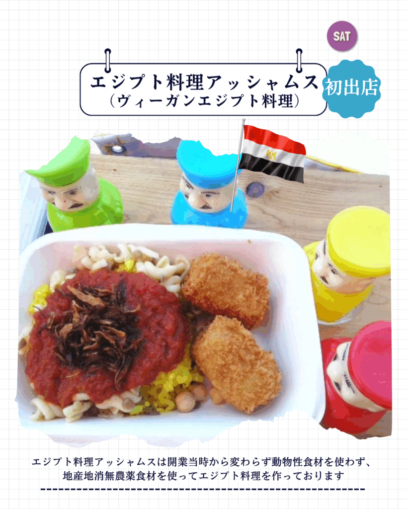 ⚫︎エジプト料理アッシャムスは開業当時から変わらず動物性食材を使わず、地産地消無農薬食材を使ってエジプト料理を作っております