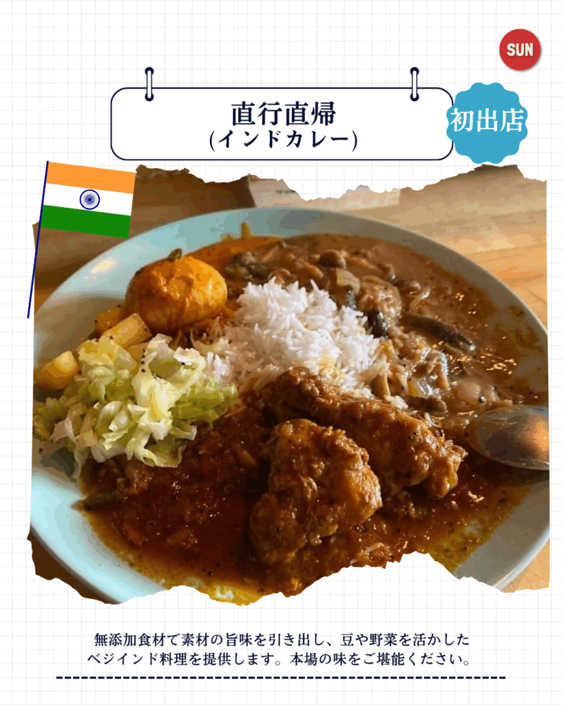 ⚫︎無添加食材で素材の旨味を引き出し、豆や野菜を活かしたベジインド料理を提供します。本場の味をご堪能ください。