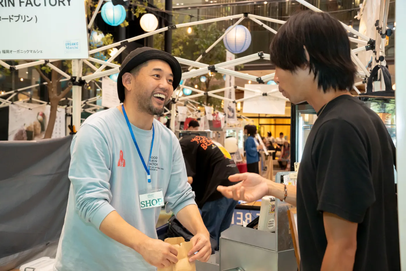 今回も、九州各地からこだわりのオーガニックやサステナブルな商品を扱う32店舗(1日20店舗展開)が大集合。新鮮なお野菜、環境に優しいコスメ、手作りのおむすびや焼き菓子、そしてクラフトビールまで、魅力的なブースがずらりと並びました。
