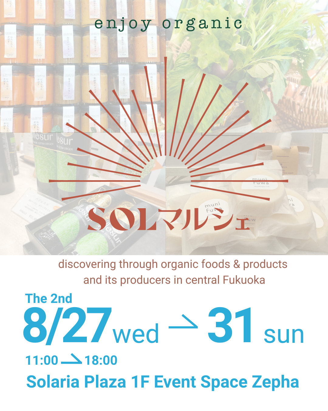 🌿 About 20 organic shops from Fukuoka each day, featuring pesticide-free vegetables, organic cosmetics, coffee, and healthy sweets