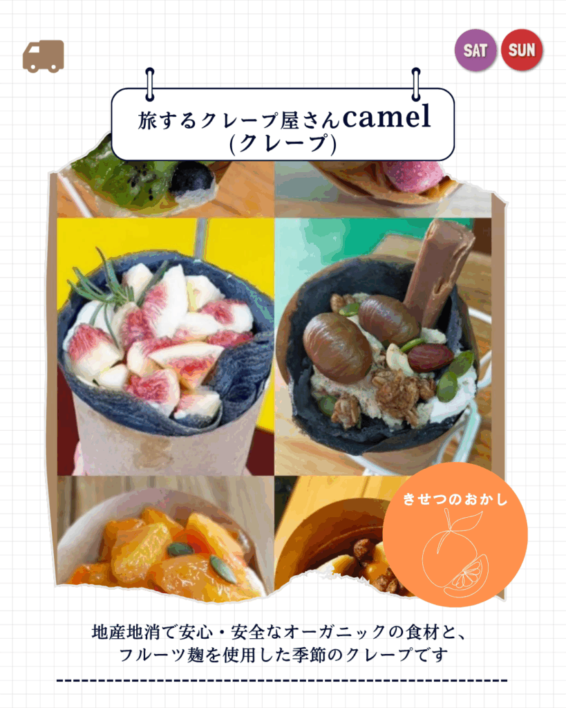 ⚫︎地産地消で安心・安全なオーガニックの食材と、フルーツ麹を使用した季節のクレープです!