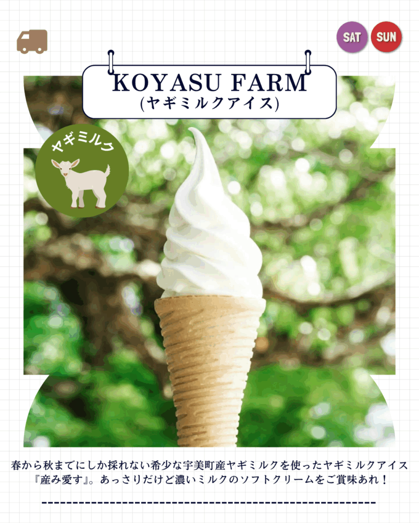 ⚫︎春から秋までにしか採れない希少な宇美町産ヤギミルクを使ったヤギミルクアイス『産み愛す』、あっさりだけど濃いミルクのソフトクリームを是非ご賞味ください🍦