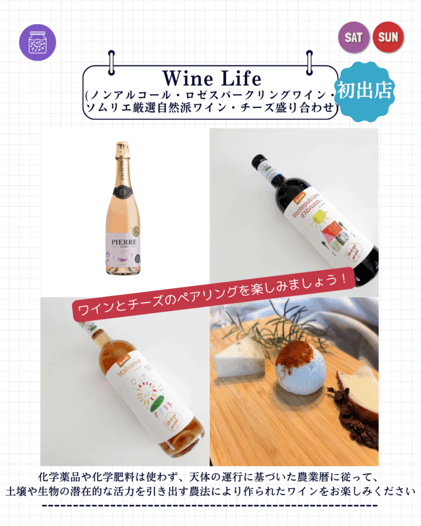 ⚫︎販売商品:イタリア産 自然派ワイン・南仏産 脱アルコール・ワイン・イタリアチーズ🧀