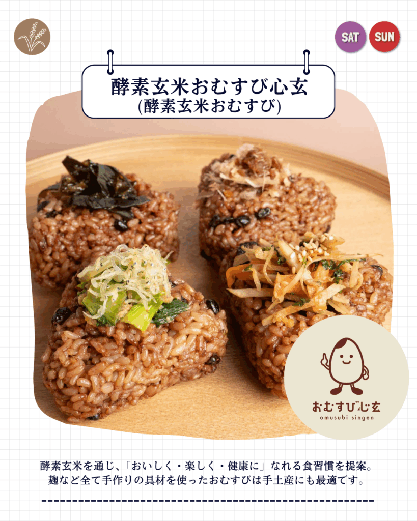 ⚫︎酵素玄米を通じて、お一人おひとりが健康への気付きになっていただき「おいしく・楽しく・健康に」なれる食習慣を提案しております。おむすびの具材は、麹を中心に全て手作りで準備しております。ご家族、お友達への手土産にも喜ばれております。
