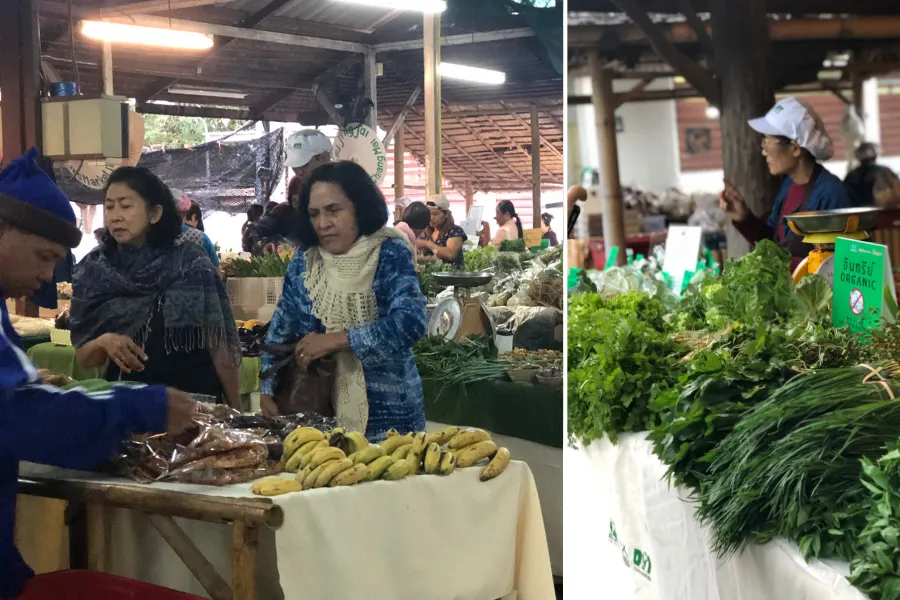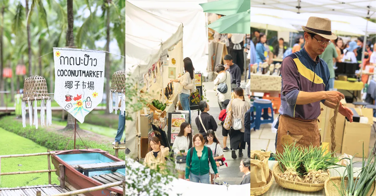 観光立国タイは、文化と創造の両面で優れた産業を誇っています。全国各地のマーケットは、それぞれ独自のスタイルで常に多くの観光客を惹きつけています。チェンマイのジンジャイ・マーケットは、地元の持続可能な農業の象徴。当初は週末の朝に開かれるファーマーズマーケットでしたが、徐々に多面的な会場へと成長し、コーヒーショップ、デザインブランド、オーガニック農産物、家族向けアクティビティ、手作り工芸品の屋台などが並ぶようになりました。参加農家の中にはチェンマイ・オーガニック認証を取得している農家もおり、屋台ではバナナの葉に包まれた多くの葉物野菜が輝き、地元の魅力発信と持続可能性を体現しています。