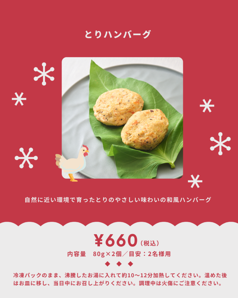 ⚫︎とりハンバーグ(2人分・80g×2個) 自然に近い環境で育ったとりのやさしい味わいの和風ハンバーグ