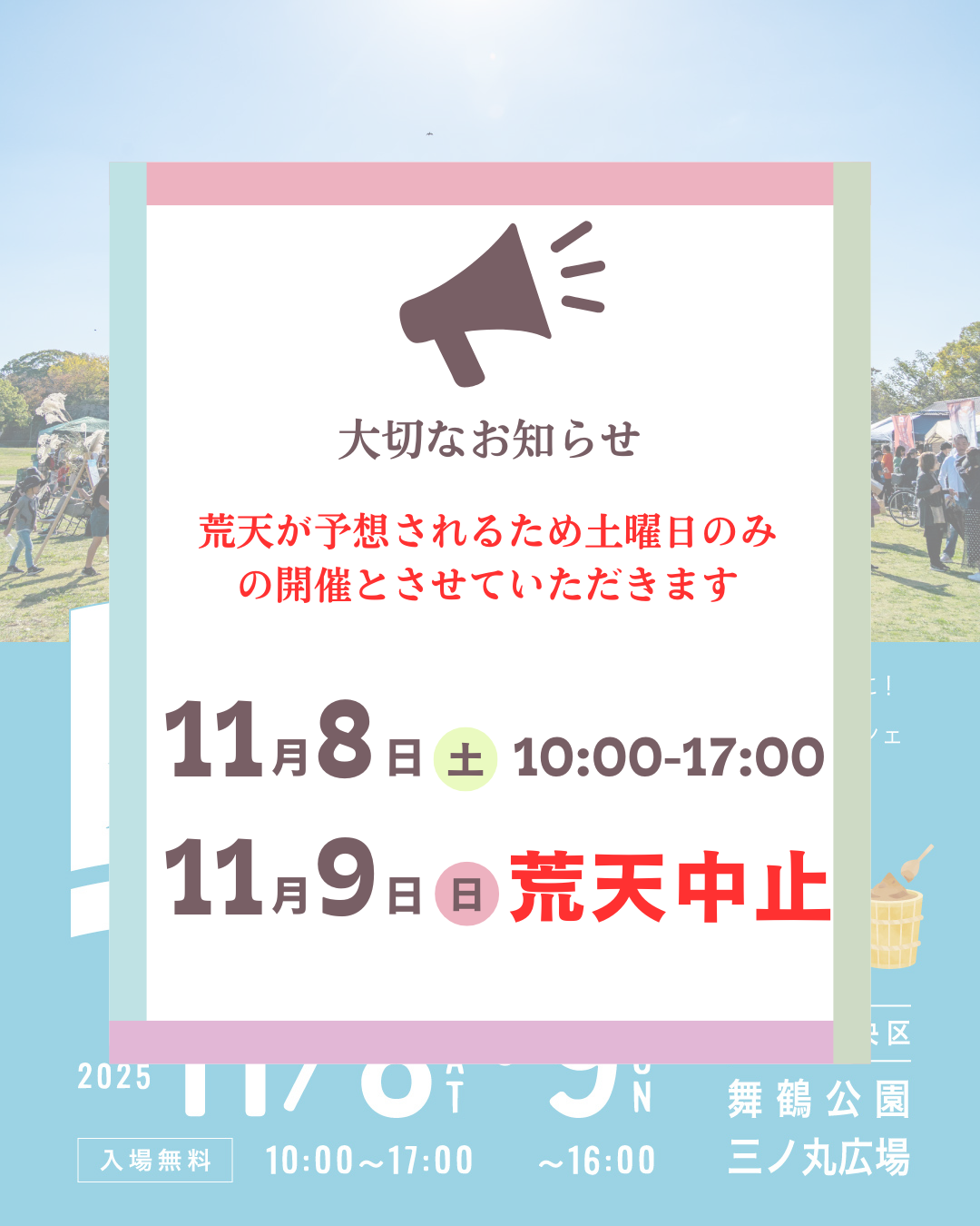 ☀️11/8(土)は晴天予報のため予定通り開催します!☀️
